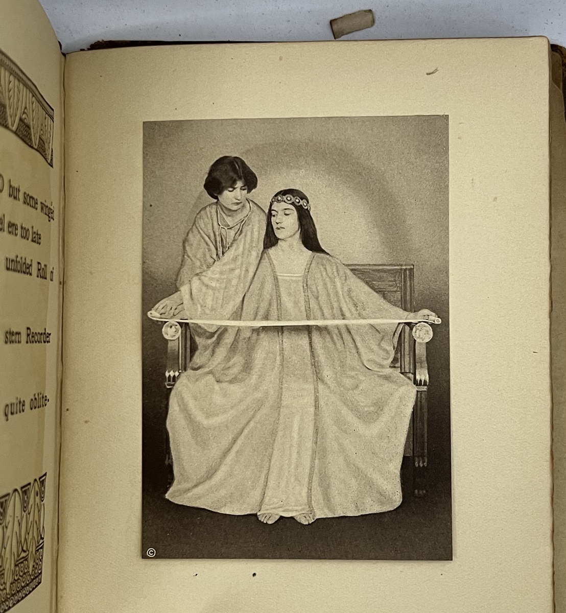 It looks very similar to this 1914 Dodge Hanscom edition. I happened to take pictures of 3/4 of the same pieces of art. I am calling this the leather cover version as the leatheriness of the cover is very bold. My copy is in very rough shape.